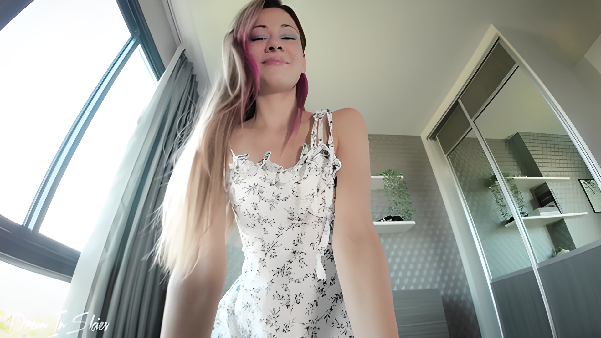 - A lady in a sundress enjoys a cock🍆 and licks cum