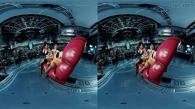 Hot blonde Tifa Lockhart and brunette Aerith Gainsborough take turns riding a massive cock in a parody of Final Fantasy. They wear sexy lingerie and their tight pussies get filled with hot cum. The 3D animated scene is full of action and features many sexy moments between these two persons.