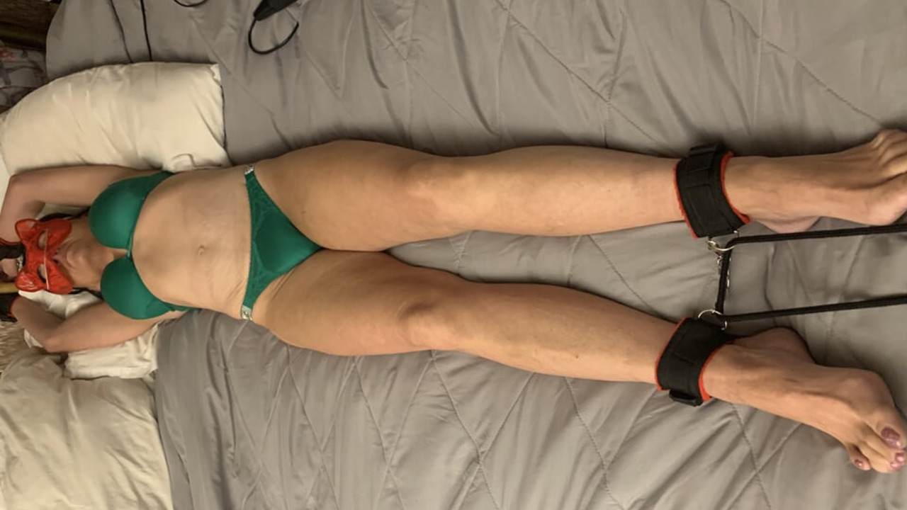 Hotwife tied up and teased by her dominant lesbian lover. Her wet, tight pussy is exposed and teased until she cums. The dominant woman then fucks her wife, making her cum again.