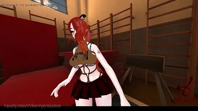 Cute step sister CherryErosXoXo gets 3D animated in a horny VR livestream. She's a popular cheerleader with a wild side, and her viewers love watching her get fucked by cartoon characters. In this video, she takes a huge cartoon cock and cums rough.