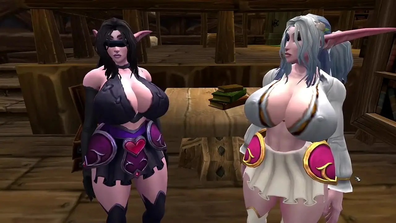 Two sexy elf sluts tease and strip for their lucky human. They show off their toned bodies, then take turns riding his hard cock. He pounds them both and gives them a delicious creampie before they continue their erotic dance.