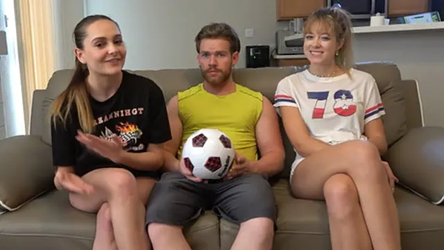 A lucky guy gets both girls to suck him off in the pool in the backyard