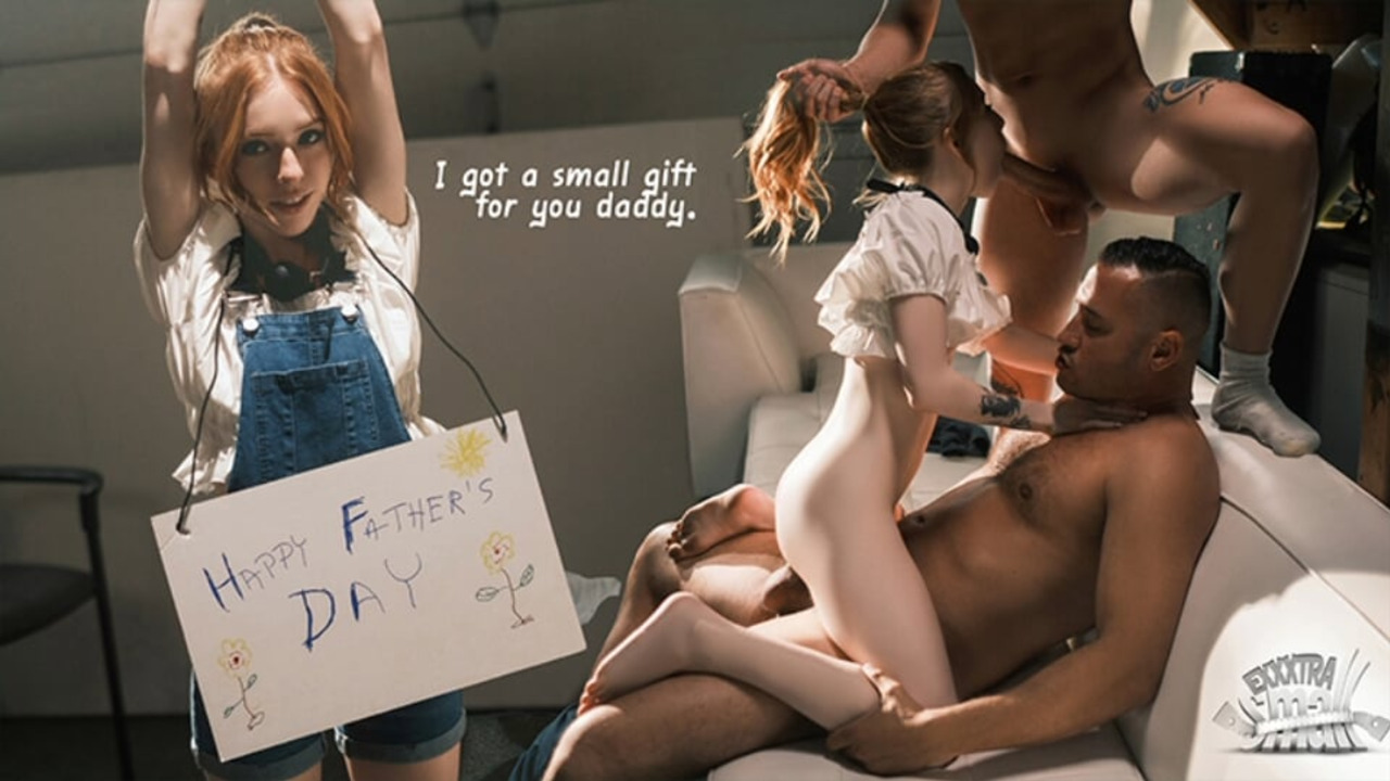 clueless stepdad doesn't realize that his stepson and stepdaughter are having a wild threesome around the house. They moan and play while he's oblivious to their sexcapades.