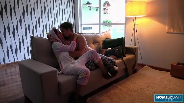 Scarlett Taylor rides cock then sucks it on the couch