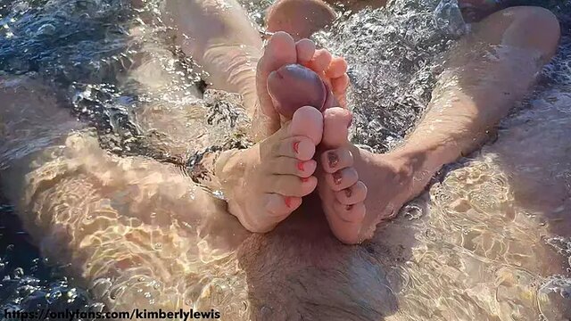 Two gorgeous step sisters frolic in the sun by an outdoor bathtub, playing with each other's wet feet and getting a delicious footjob. Their wet pussy lips glisten as they tease their lucky guy who joins the fun, fucking them both and making them cum all over their own feet. The dreamy scene is captured in 4K, bringing out every sensual detail of the wettest foot fetish action.