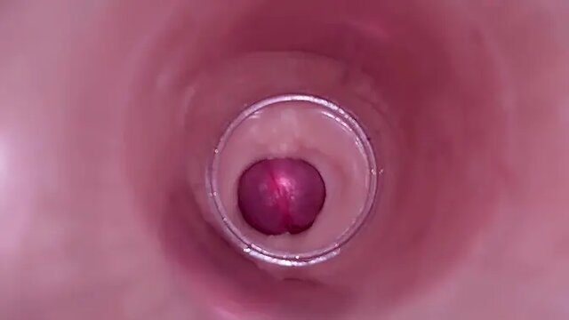 Close up of a natural 18-year-old girl's pussy as she receives fucked hard. The internal camera captures his deep ejaculation and milking her pussy. She's left wide-eyed and creampied.