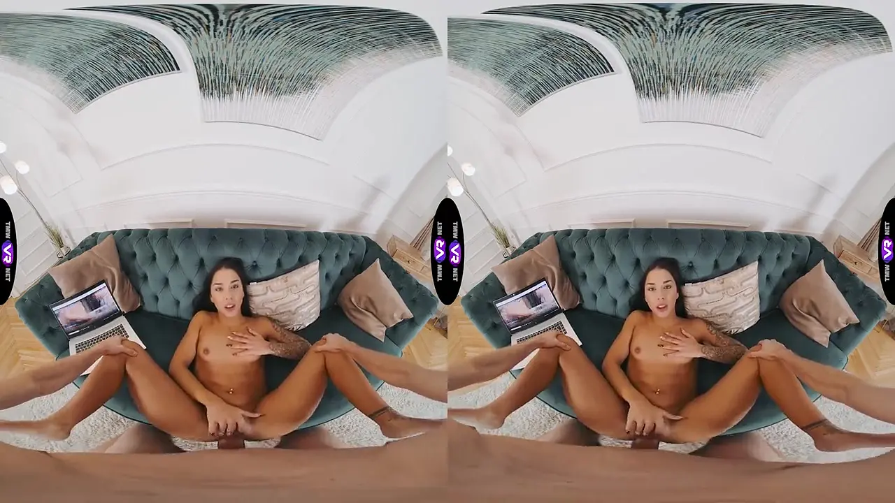 Black Angel believes she is home alone, which is why she decides to watch some erotica and play with her pussy. She gets so involved in the process that she even doesn’t notice her boyfriend entering the room. The dude, however, loves the view of Black Angel caressing his pussy so much that he gets excited to the limit as well. He starts jerking off and gets to the middle of the process when Black Angel finally turns around and notices him. They both are so aroused that they don’t want to discuss anything. Black Angel comes up to the dude, takes his dick into her hands and mouth, and gives him a deep blowjob.