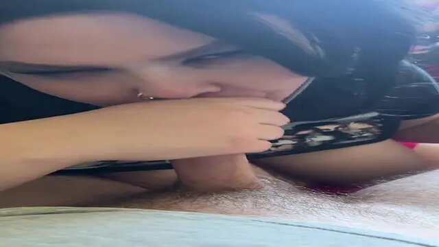 naughty brunette milf with big natural tits gives a deepthroat blowjob in POV. She wraps her big areola around his uncut cock and devours him hard. He cums all over her big tits and clothes, with some cum spitting out.