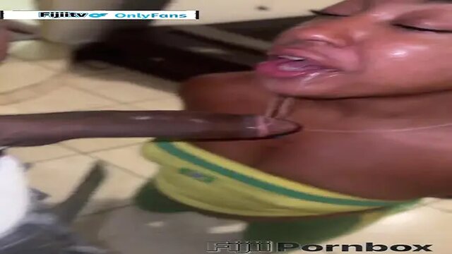 A mature, natural-titted, 18-year-old amateur Nigerian wife/girl gives a deepthroat blowjob to her husband's big black cock in their kitchen. She sucks it hard and takes it deep, making him moan in pleasure. He eventually cums all over her face, leaving her with a messy facefuck.