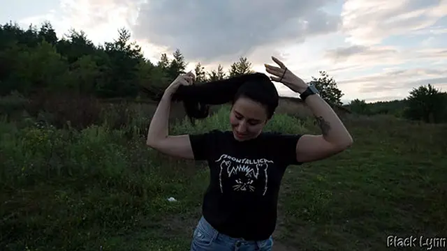 Ponytail Brunette Sucks Cock Outdoors