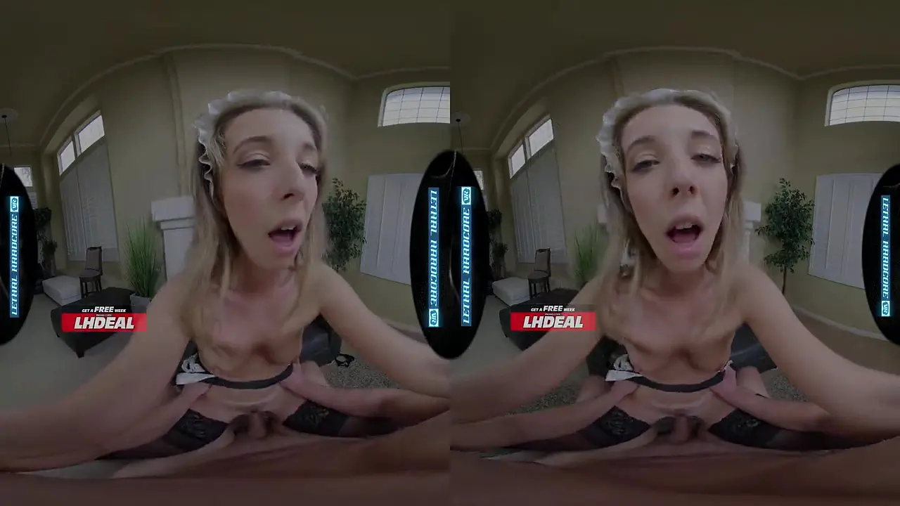 A horny college maid in her uniform sucks his cock and rides it doggystyle. Her hairy pussy grips him tight as he pounds her from behind. She cums intense before he cleans up with his cum on her uniform.