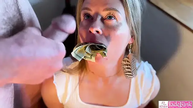 20 Dollar Bills Stuffed in Wet Pussy & Handjob Facial Cumshot